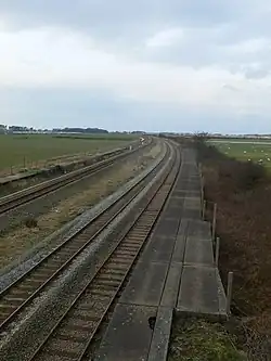 Following closure parts of the platforms (in 2020) were still in situ.[2] The signalbox remained in use until closure in March 2018 – for many years this controlled access to the busy exchange sidings for the nearby Point of Ayr Colliery. The mine closed in 1996[3] and the site has since been cleared, but the disused sidings are still visible from passing trains.