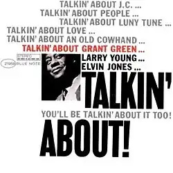 Talkin' About! is an American jazz guitarist Grant Green album featuring performances recorded in 1964 and released on the Blue Note label.[2] Green is supported by organist Larry Young and drummer Elvin Jones. It was reissued in Japan on CD with a slightly different cover: same design, but with a blue background.