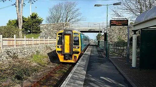Talybont railway station serves the villages of Tal-y-bont and Llanddwywe in Gwynedd, Wales. The station is an unstaffed halt on the Cambrian Coast Railway with passenger services to Harlech, Porthmadog, Pwllheli, Barmouth, Machynlleth and Shrewsbury. Most trains call only on request.
