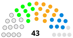 Since the last boundary changes in 2024, the council has comprised 43 councillors representing 18 wards, with each ward electing one, two or three councillors. Elections are held three years out of every four, with roughly a third of the council elected each time to serve a four-year term. Surrey County Council elections are held in the fourth year of the cycle when there are no district council elections.[26]