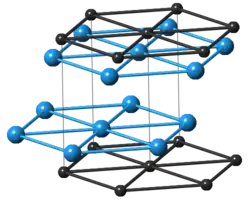 TaCx compounds have a cubic (rock-salt) crystal structure for x = 0.7–1.0;[14] the lattice parameter increases with x.[15] TaC0.5 has two major crystalline forms. The more stable one has an anti-cadmium iodide-type trigonal structure, which transforms upon heating to about 2,000 °C into a hexagonal lattice with no long-range order for the carbon atoms.[10]