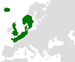 Taraxacum britannicum is native to the British Isles, where it is widespread throughout Britain, although becoming less frequent in the north. It inhabits a range of environments, including wet meadows, man-made habitats such as pavements, walls, and gardens, as well as natural sites like cliffs and ravines, particularly in western and northern regions. Beyond the British Isles, the species is known from Western Europe and Fennoscandia, with confirmed occurrences in countries including Belgium, Denmark, France, Germany, the Netherlands, Norway, Sweden, and Iceland.[2][3]