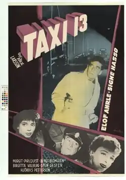 Taxi 13 is a 1954 Swedish crime drama film directed as well as written by Börje Larsson and starring Elof Ahrle, Signe Hasso, Margit Carlqvist and Birgitta Valberg.[1] It was shot at the Centrumateljéerna Studios in Stockholm. The film's sets were designed by the art director Nils Nilsson.