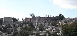 Tekkadın ruins are a group of ruins in Mersin Province, Turkey. The name of the ruins is a local name meaning "single woman". The original name is not known. The ruins are in the rural area of Silifke ilçe (district) of Mersin Province at 36°29′19″N 34°00′27″E / 36.48861°N 34.00750°E / 36.48861; 34.00750. The visitors follow Turkish state highway D.400 and turn north in Atakent town. The ruins are about 11 kilometres (6.8 mi) to Atakent. Distance to Silifke is 27 kilometres (17 mi) and to Mersin is 77 kilometres (48 mi).