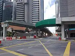 During the station's construction, a temporary viaduct was built along Cross Street.[11] The two-lane 407-metre (1,335 ft) bridge, which ran between Central Boulevard and China Street, was constructed to replace the closed lanes that had to make way for the station's construction.[14][15][16] Work on the viaduct began on 3 February 2008[14] and it opened for traffic on 28 December that year.[17][18] Three subsequent ramps to the viaduct were opened over the course from February to April 2009.[19][20][21]