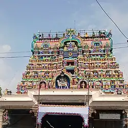 The Mela Thiruvenkatanathapuram temple's sanctum has a Lord Srinivasa statue. The temple is located about 10 km (6.2 mi) southwest of Tirunelveli, also beside the banks of Thamirabarani river. This temple is also called Thirunankovil.