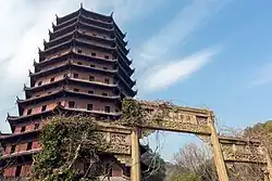 Leifeng Pagoda, or the Leifeng Hill where the pagoda stands,[15] in the sunset
