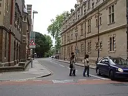 Pembroke College is to the west at the northern end and Downing College is to the east at the southern end of the road.