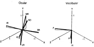 The resulting metric tensor allowed for accurate predictions of the neuronal connections between the three intrinsically orthogonal vestibular canals and the six extraocular muscles that control the movement of the eye.[10]
