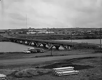 The Tenth Street Bridge is a concrete arch bridge in Great Falls, Montana, spanning the Missouri River. The bridge was designed by engineer Ralph Adams of Spokane, Washington and Great Falls architect George Shanley, and was completed in 1920. It was the longest open-spandrel ribbed concrete arch bridge in Montana.[2]