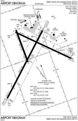 1. ^ a b c FAA Airport Form 5010 for HUF PDF. Federal Aviation Administration.