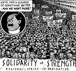 Its initial release in 1989 caused a furor in the tabloid newspapers in the United Kingdom, who excoriated the comic for characterizing Tintin as a "picket yob".[2] In a 1990 review, The Times called the book "a naive and brutish strip-cartoon book for junior Dave Sparts".[3] In 1994, The Guardian wrote: "The interesting things about it are the way each frame is adapted from Hergé's originals, and the touching belief in the possibility of an upsurge in grassroots socialist radicalism".[4] That same year, Martin Rowson, writing in The Independent, described the work as a "sad little publication" and called the book's approach to copyright "another acute observation in what I take to be a brilliant post-modern parody of a situationist canard produced during a sit-in at Hornsey School of Art circa 1972."[5] Gabriel Coxhead, writing in The Guardian in 2007, referred to the comic as "entertaining enough, if rather didactic", arguing that the "real interest is the artwork: each figure, every pose, has been assiduously copied from Hergé's own drawings, and recontextualised".[2] Zoheb Mashiur, writing in The Daily Star in 2021, wrote, "In the best traditions of Tintin stories, J Daniels took the character and placed him at the heart of contemporary issues. [...] He's not fighting for the perpetuation of a status quo, or inserting himself into the business of hapless foreigners; Daniels' Tintin is protecting his own people at home and trying to carve out a better world for them."[6]