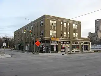 The Alameda is a historic apartment building located at Indianapolis, Indiana. It was built about 1925, and is a three-story, rough cast buff brick building. It has commercial storefronts on the first floor. It features distinctive spandrels with basketweave pattern brickwork.[2]: Part 3, p. 2