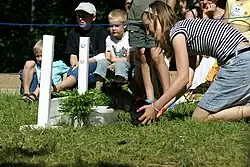 - After the second Roadblock, teams had to take part in a traditional dance of the Murut people. If they failed, they would be thrown off the stage. Once performed correctly, each team member had to jump on a bamboo trampoline that was adjusted to their height to grab an Amazing Race flag hanging overhead to receive their next clue and a piece of a Buddhi Batiks sari.