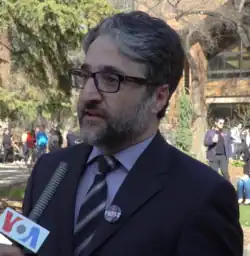 Hamed Esmaeilion, president of the association, doing an interview with VOA about Flight 752