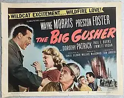 The Big Gusher is a 1951 American adventure film directed by Lew Landers and starring Wayne Morris and Preston Foster.[1] A pair oil prospectors on a drunken spree buy an apparently worthless piece of land from a con man, then attempt to find if there may really be oil there.