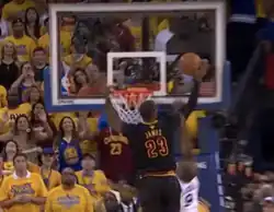 The Block was a defensive basketball play that occurred in Game 7 of the 2016 NBA Finals, played between the Cleveland Cavaliers and Golden State Warriors on June 19, 2016, at Oracle Arena in Oakland, California. With less than two minutes remaining in the deciding game of the championship series, Cavaliers forward LeBron James chased down Warriors forward Andre Iguodala and blocked his layup attempt, ensuring the game remained tied. It is considered to be one of James's greatest clutch moments,[1] and his performance across the series—the only time in which a single player has led both teams in points, assists, steals, and blocks—is considered to be one of the best in NBA Finals history.[2]