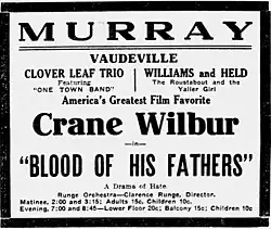 The Blood of His Fathers is a 1917 American silent drama film directed by Harrish Ingraham and starring Crane Wilbur, Jode Mullally and Ruth King.[1] The film begins shortly after the American Civil War when a renegade Confederate soldier commits three murders before jumping on to 1917.