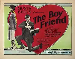The Boy Friend is a lost 1926 American silent romantic comedy film directed by Monta Bell. Based on the play The Book of Charm by John Alexander Kirkpatrick, the film starred Marceline Day and John Harron.[1][2] This film also marked the film debut of character actress Elizabeth Patterson.[3]