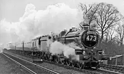 The Bristolian was inaugurated in 1935 by the Great Western Railway (GWR) to celebrate the opening of the Great Western Main Line from Paddington to Bristol in 1835,[1] and is notable in that the route taken differed in the up and down directions. The down train (from Paddington) took Brunel's original route via Bath, but the up train (from Bristol) climbed the 1 in 75 of Filton Bank through what is now Bristol Parkway and then continued climbing the 1 in 300 of the Badminton Line to Badminton before rejoining the down route at Wootton Bassett. This meant that the up train had a slightly shorter route of 117.6 miles (compared to 118.3 miles in the down direction via Bath), but with the stiff climb was probably the harder.