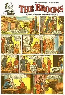 The Broons (English: The Browns) is a comic strip in Scots published in the weekly Scottish newspaper The Sunday Post. It features the Brown (Broon) family, who live in a tenement flat at 10 Glebe Street (since the late 1990s) in the fictional Scottish town of Auchentogle or Auchenshoogle.