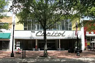 The Capitol, also known as The Capitol Department Store, is a historic department store building located at Fayetteville, Cumberland County, North Carolina. The original store was established at this site in 1921, with an existing two-story building incorporated into it in 1936. In 1949, the existing building was doubled in size by a large rear addition. The most notable feature is the 60-foot (18 m) wide Modern Movement storefront added in 1955. It features marble facing, a recessed storefront, a large convex full-height window in the second story, and large aluminum script lettering for The Capitol. The Capitol, the last department store remaining in downtown Fayetteville, closed in March 1990.[2]