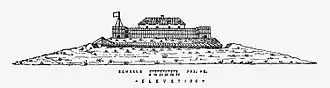 Smaller than the one in Old Quebec, the Citadel was built by the French in 1690 replacing the 1658 redoubt at Pointe-à-Callière. It consisted of a barrack structure surrounded by wood stakes palisade and located on a hill along the city's fortification wall. A cannon battery added in 1723.