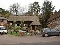 It has been listed Grade II on the National Heritage List for England since December 1985.[2] The pub largely dates from the 17th and 18th-century.[2] The thatched barn to the north-west of the pub and the stables to the south-west are also individually Grade II listed.[3][4]