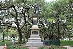 Around the centennial of this event, plans were underway to create a monument to honor the South Carolinians involved in the battle. By the battle's centennial on June 28, 1876, the large granite base of the monument had been installed, with the bronze statue of Jasper being added by next year.[3] The Palmetto Guard, a military company in Charleston,[4] held the dedication ceremonies on June 28, 1877, first travelling to nearby Middleton Place before returning to the city for the dedication.[3] The name for the monument, The Defenders of Fort Moultrie, is anachronistic, as the fort at the time of the battle was known as Fort Sullivan.[5]