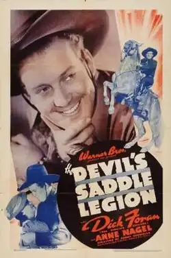 The Devil's Saddle Legion is a 1937 American Western film directed by Bobby Connolly and written by Ed Earl Repp. The film stars Dick Foran, Anne Nagel, Willard Parker, Gordon Hart, Ernie Stanton, Max Hoffman Jr. and Jeff York. The film was released by Warner Bros. on August 14, 1937.[1][2]