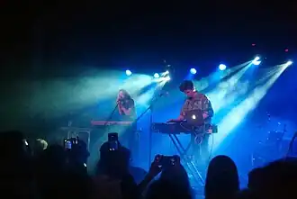 Justyna Święs and Kuba Karaś first met in 2011[1] at a song competition and decided to start playing together.[3] Initially, they were playing indie rock acoustic songs, but then decided to go in a more electronic direction.[4] During the Summer 2013, they composed several songs and mailed them to Łukasz Jakóbiak who has a popular Internet talk-show 20m2 Łukasza.[2][5] The band became an Internet phenomenon, and in November 2013 they began their first sold-out tour, playing concerts in clubs in Poland.[1][5]