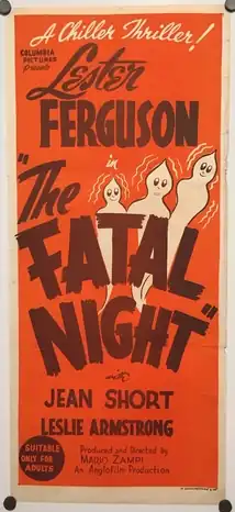The Fatal Night is a 1948 British thriller film directed by Mario Zampi and starring Lester Ferguson, Jean Short and Leslie Armstrong.[3] It is based Michael Arlen's 1925 short story The Gentleman from America, which tells the story of an American visitor in London who makes a bet with two Englishmen to see if he can spend a night alone in a "haunted" room. The story was adapted for the screen by British crime novelist Gerald Butler. The same story, under its original title, was adapted in 1956 as an episode of the television series Alfred Hitchcock Presents.
