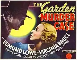 The Garden Murder Case is a 1936 American mystery drama film, the tenth in the Philo Vance film series, following after 1935's The Casino Murder Case. In this entry to the series, Vance is played by Edmund Lowe, and Virginia Bruce co-stars. The film also features Benita Hume, Douglas Walton, and Nat Pendleton. It was directed by Edwin L. Marin from a screenplay by Bertram Millhauser based on the 1935 book of the same name by S. S. Van Dine.