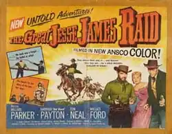 The Great Jesse James Raid is a 1953 American Ansco Color Western film directed by Reginald LeBorg and starring Willard Parker, Barbara Payton, and Tom Neal.[1][2][3] This was the only film for Tom Neal and Barbara Payton to co-star together, as their ill-famed love affair essentially derailed the movie careers of both of them.