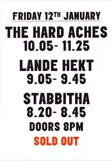- ^ "The Hard Aches – January 2018 Tour". The Hard Aches. Retrieved 20 November 2022.