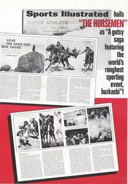 Roger Ebert gave the film two and a half of four stars and wrote that "neither John Frankenheimer's spare, heroic direction nor Claude Renoir's spectacular photography can quite bring this horseman to life."[6] Vincent Canby of the New York Times called the film and the novel of The Horsemen "fiction designed to glorify machismo of the most ignorant, savage sort," and called the movie "a remote, choppy adventure."[7]