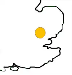 Approximate location and scale of the Hundred Parishes within the East of England.