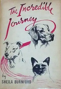 The Incredible Journey (1961), by Scottish author Sheila Burnford, is a children's book first published by Hodder & Stoughton, which tells the story of three pets as they travel 300 miles (480 km) through the Canadian wilderness searching for their beloved masters. It depicts the suffering and stress of an arduous journey, together with the unwavering loyalty and courage of the three animals. The story is set in the northwestern part of Ontario, which has many lakes, rivers, and widely dispersed small farms and towns.