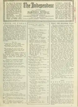 The Independent was a weekly magazine published in New York City between 1848 and 1928. It was founded in order to promote Congregationalism and was also an important voice in support of abolitionism and women's suffrage. In 1924 it moved to Boston, Massachusetts.