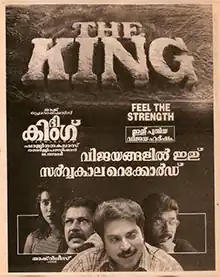 The King is a 1995 Indian Malayalam-language political action thriller film directed by Shaji Kailas, written by Renji Panicker and produced by Manjalamkuzhi Ali. The film stars Mammootty, alongside Murali, Vijayaraghavan, K. B. Ganesh Kumar, Vani Viswanath, Devan and Kazan Khan.[1][2]