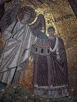 Klimt's father was a traveling artisan specializing in gold engravings, but Klimt's use of gold leaf in paintings was inspired by a trip he made to Italy in 1903. When he visited Ravenna he saw the Byzantine mosaics in the Church of San Vitale. For Klimt, the flatness of the mosaics and their lack of perspective and depth only enhanced their golden brilliance, and he started to make unprecedented use of gold and silver leaf in his own work.[11]