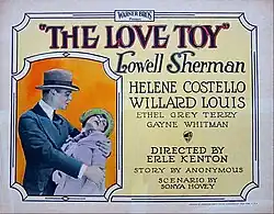 The Love Toy is a 1926 American silent comedy film directed by Erle C. Kenton and starring Lowell Sherman, Jane Winton, and Willard Louis. Produced and distributed by Warner Brothers.[1]