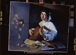The Lute Player is a composition by the Italian Baroque master Caravaggio. It used to exist in two versions, one in the Wildenstein Collection and another in the Hermitage Museum, St. Petersburg. A third version, which was kept for 275 years at Badminton House, Gloucestershire, came to light in 2001, and which today is understood to be the original version. The Hermitage and the Badminton House versions were exhibited together in 2020 at the Galleria Borghese.[1]