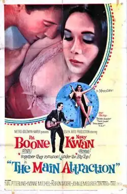 The Main Attraction is a 1962 British-American drama film directed by Daniel Petrie, and starring Pat Boone, Nancy Kwan and Mai Zetterling.[2] It was written by John Patrick. The music soundtrack was written by Boone and Jeff Corey and performed by Boone. A young drifter causes problems for a small European circus.