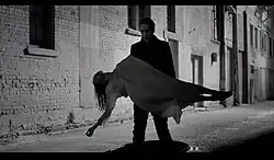 In a subsequent scene, Mephistopheles is seen wandering down an alleyway, where he enters a room with a trinity of similar looking women. He eventually chooses one of the women by blessing them, and he begins baptizing her in a bathtub full of muddy water. When she loses consciousness, Mephistopheles revives her with the kiss of life, only to forcibly hold her under the water once again. After a prolonged, sinister gaze directly in to the camera, Mephistopheles holds the now-thrashing woman underwater until she appears lifeless. The video ends with Mephistopheles holding her drowned body in the air.[9][11][12][13]