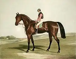 The Merry Monarch with jockey Foster Bell. Painting by Francis Calcraft Turner.