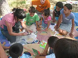 The Art and Activism Caravan was a project initiated by the Amsterdam-based youth organisation European Youth For Action in which The Mischief Makers took part. Its idea was to "support and connect youth, campaign, community and activist groups, their actions and campaigns with creative forms of activism.".[23] Also known as the 'AA Caravan' a group of around 10 people traveled from Greece via Macedonia, Albania, Montenegro, Serbia and Hungary to the environmental youth Ecotopia gathering in Slovakia. The Caravan worked intensively with numerous groups over a 3-month period.