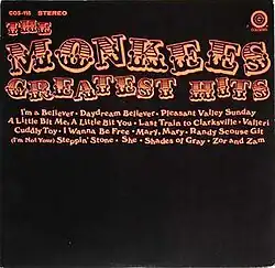 The Monkees Greatest Hits is the first greatest hits compilation album by the American pop rock band the Monkees, released in 1969 by Colgems Records.[1]