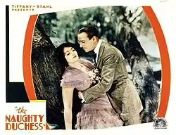 The Naughty Duchess is a 1928 American silent romance film directed by Tom Terriss and written by Anthony Hope Hawkins based on his 1894 novel The Indiscretion of the Duchess: being a story concerning two ladies, a nobleman, and a necklace.[1]