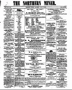 The Northern Miner was first established in 1872 by James Smith Reid.[1] Reid established the paper only eight months after the discovery of gold in the regional Queensland town Charters Towers.[2]